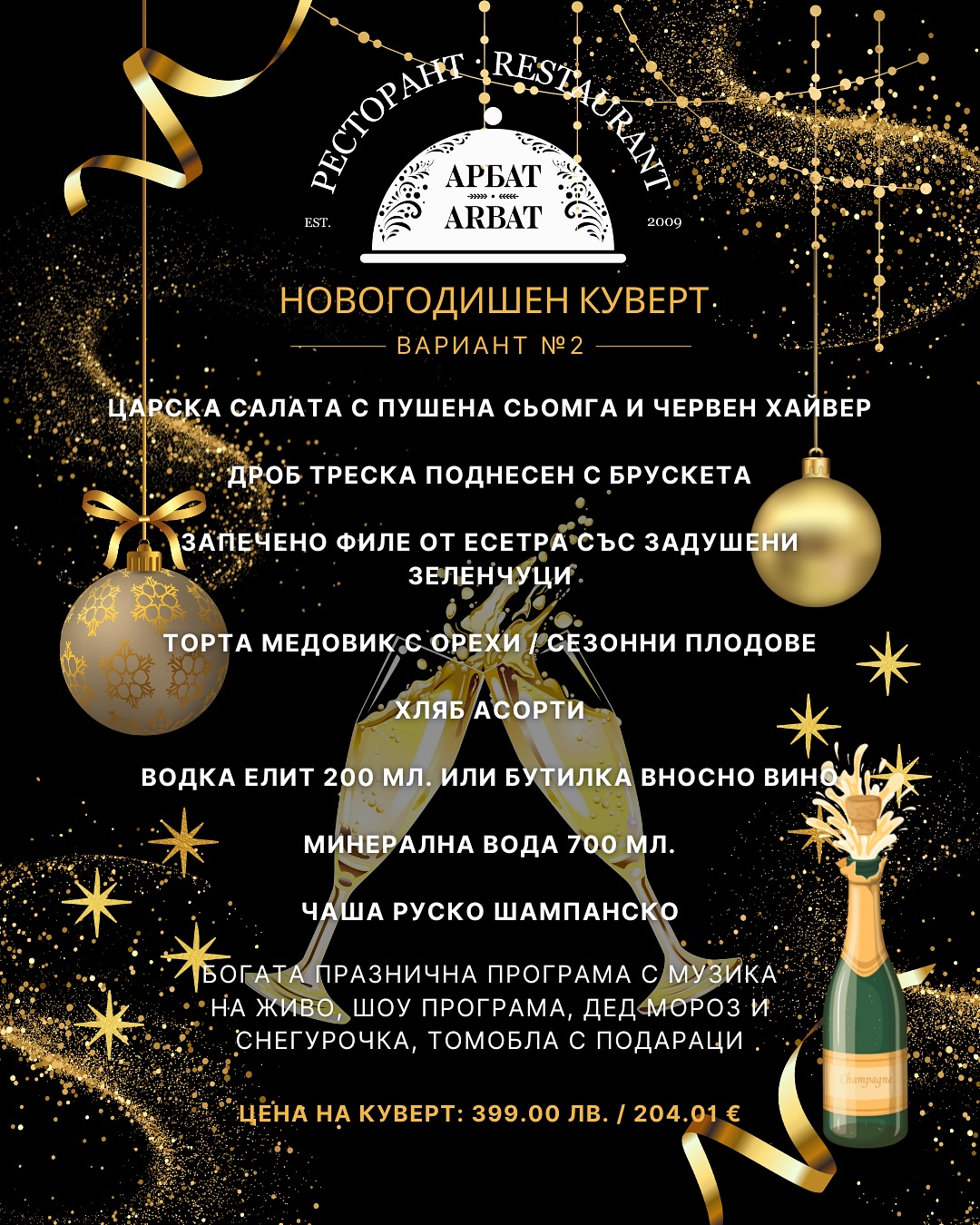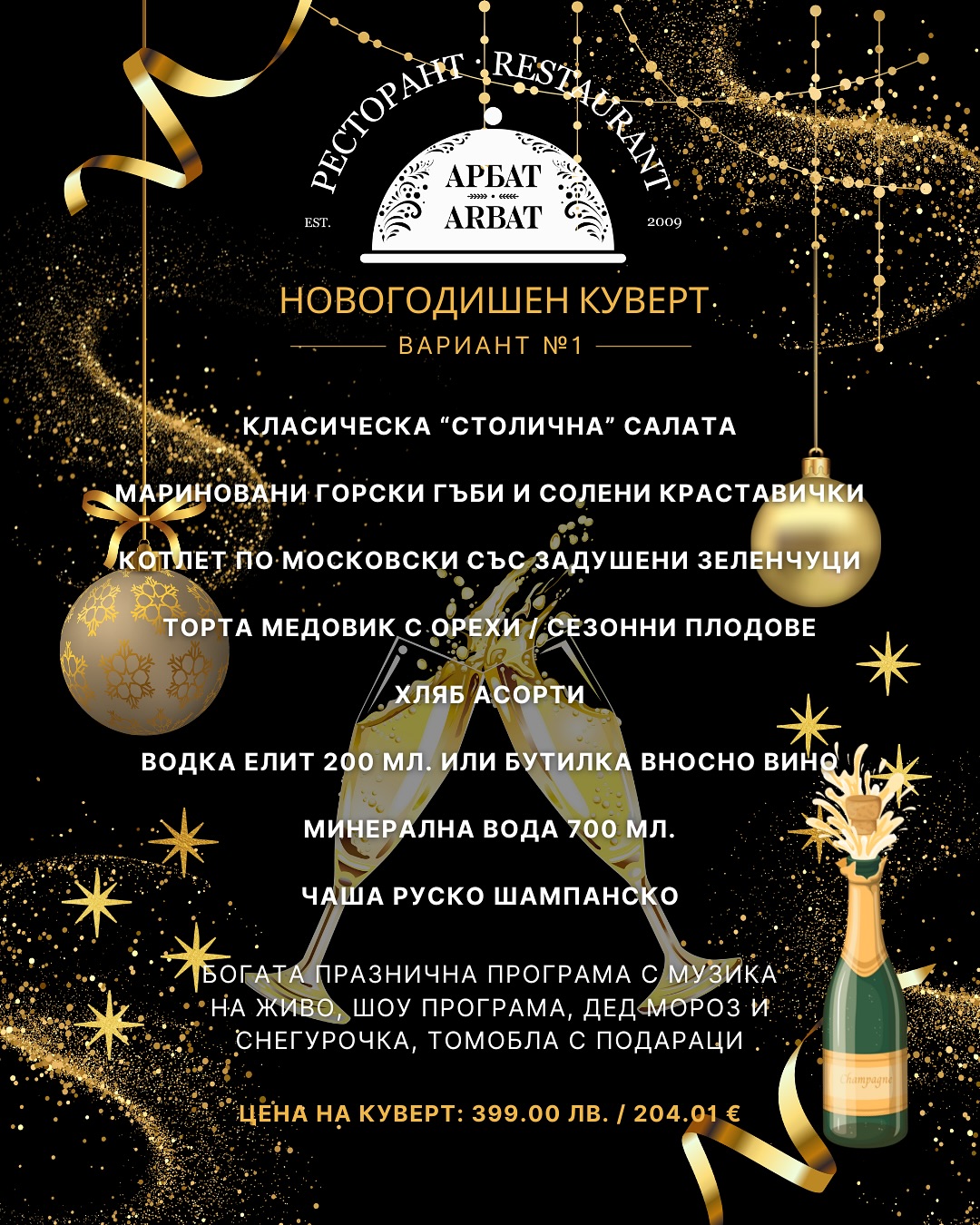 Посрещнете Нова Година 2026 в ресторант АРБАТ